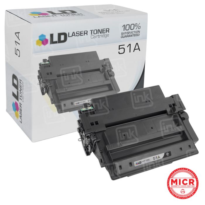 InkCartridges.com offers remanufactured laser cartridges to replace the HP (HP) Q7551A / HP 51A Black toner cartridge exclusively designed for your HP printer. The LD remanufactured Q7551A / HP 51A was specially reengineered to provide you with excellent results when printing professional checks. Our toner contains iron, allowing your checks to be accepted at banks and pass through their scanning system. Our laser toner cartridges are rebuilt from mostly new parts and are of the highest caliber. Our laser cartridges are backed by a 2 year Money-Back Quality Satisfaction Guarantee. Our remanufactured toner cartridges are not remanufactured by HP.