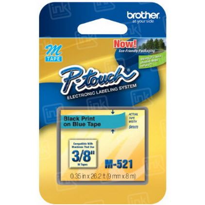 Brother brand M521 black on blue tape cartridges are high quality tape cartridges designed exclusively for your P-Touch printer. This tape is 9m (0.35"") x 8m (26.2 ft) and non-laminated. You can order your M521 tape cartridge right here, no hassle, no delays. 100% Satisfaction Guarantee.