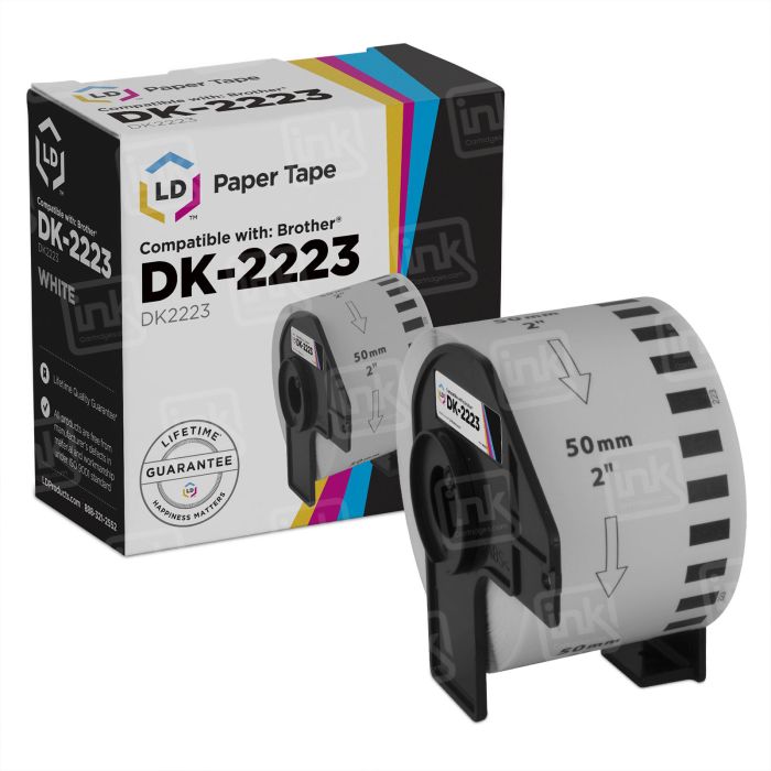 InkCartridges.com offers compatible Brother DK-2223 paper tape exclusively designed for your Brother label printer. Our compatible paper tape will work just as well as the original Brother brand and is backed by a two year guarantee and ship fast! Size: 1.9 in x 100 ft.