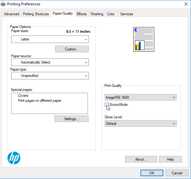 1. Economy Printer Settings